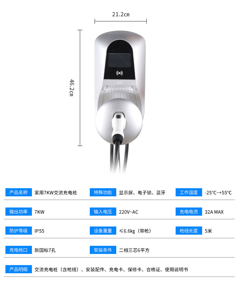 - 通用型充电桩新能源汽车充电桩交流32A快充充电枪家用