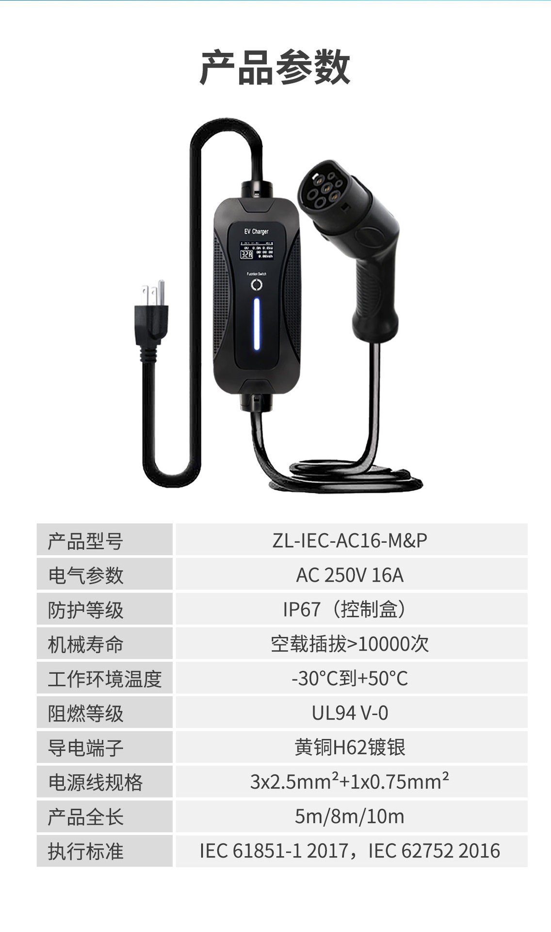 3.5kw新能源汽车便携式随车充电桩家用充电枪比亚迪特斯通用欧标