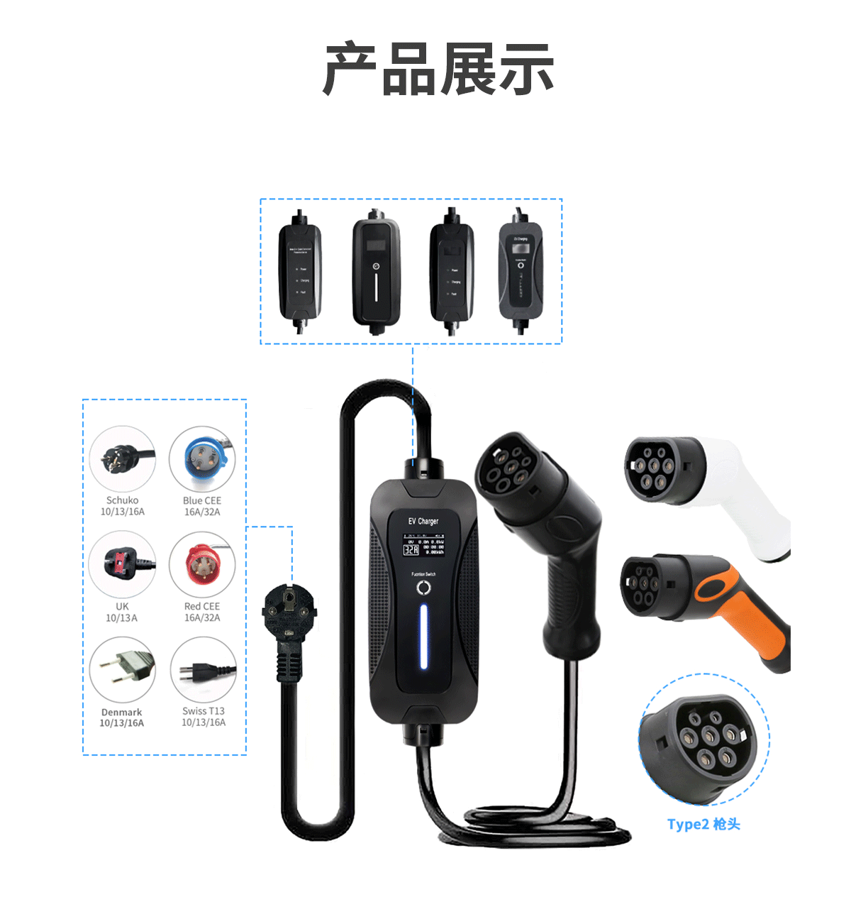 专供欧标type2 EV charger新能源汽车16A家用充电枪桩11kw