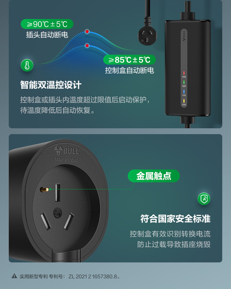 公牛新能源便携式充电枪舒享款3.5KW汽车随车充适用特斯拉比亚迪