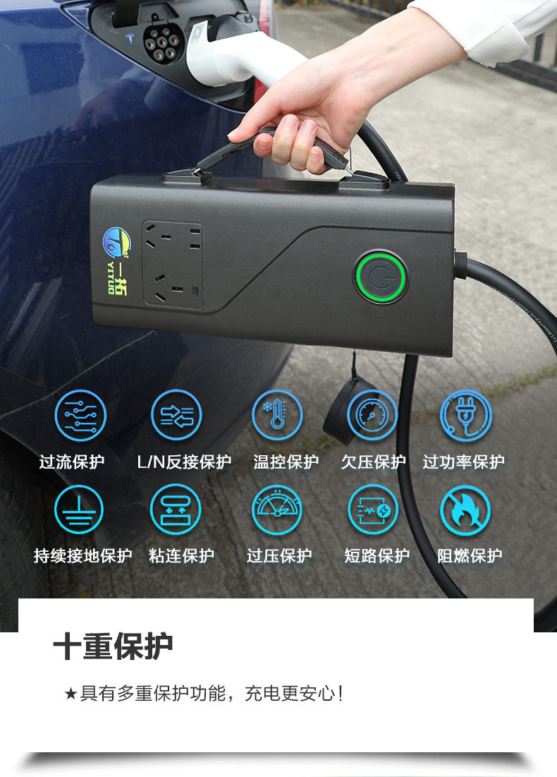 - 一拓3.3KW便携式家用直流充电器红旗蔚来便携式充电枪量大从优