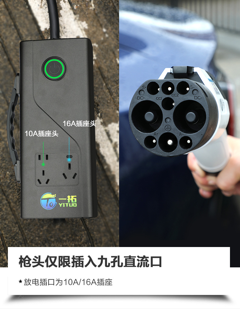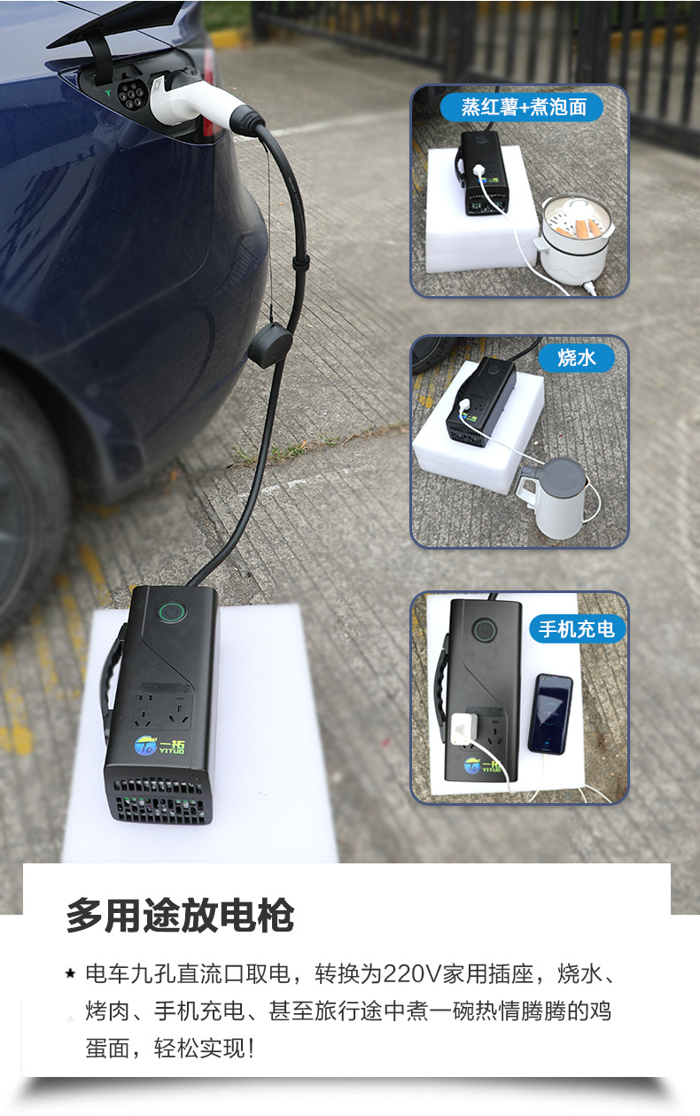 - 定制 欧标国标款新能源电动汽车充电桩户外露营便携式放电枪