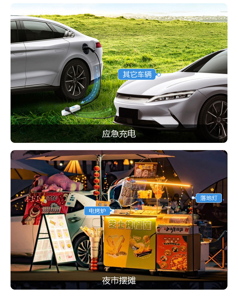 - 新能源电动汽车九孔直流放电机户外露营取电器特斯拉蔚来对外放电
