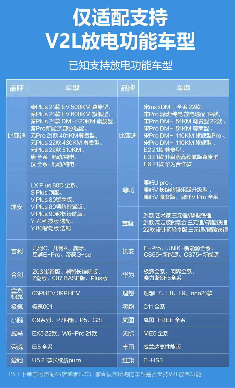 - 适用星途星纪元ES/ET充放电一体便携式随车充新能源家用放电