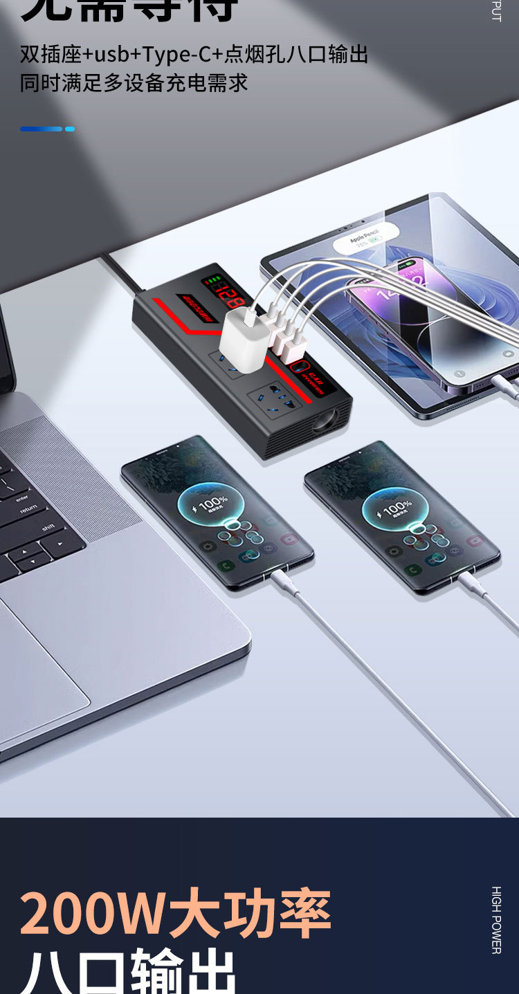 车载逆变器12V24V通用转220V大功率智能汽车逆变转换器手机充电器
