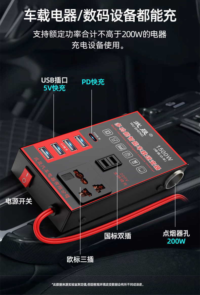 无线充电车载逆变器12v24v转220v大功率转换器多功能车用手机支架