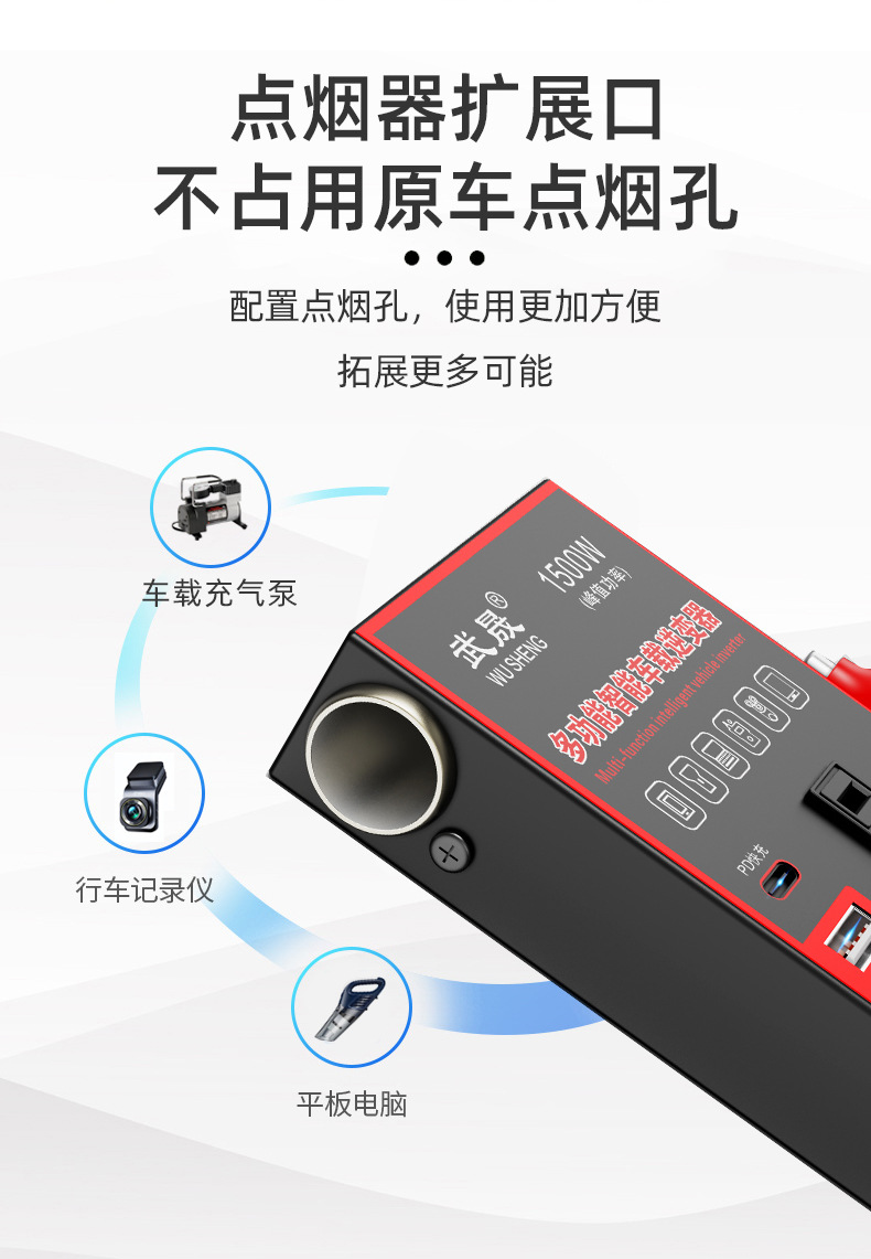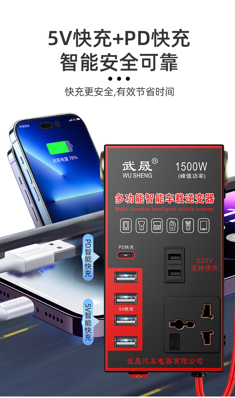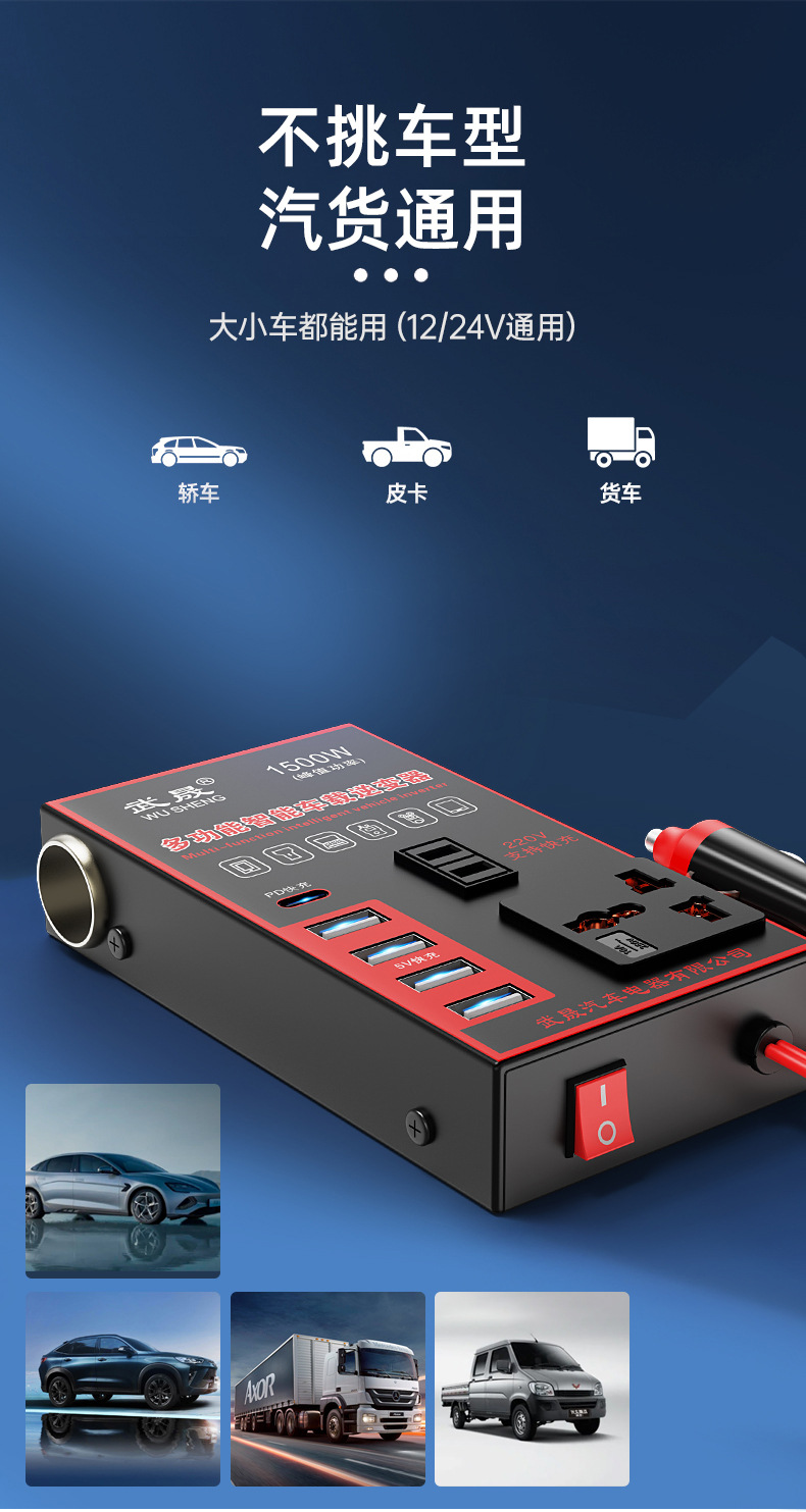车载逆变器12V24V通用转220V汽车电源插座货车智能充电逆变转换器
