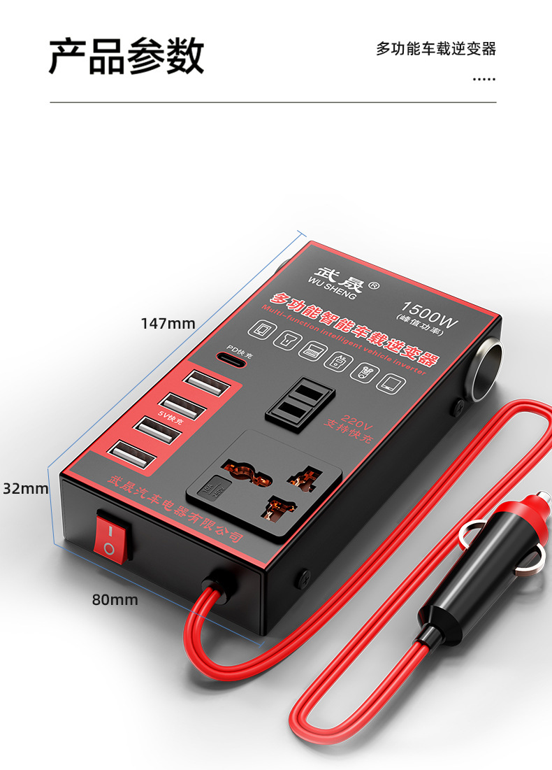 车载逆变器12v转110V24v转220V汽车货车点烟器转换器车用充电插排