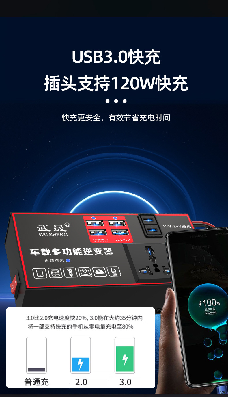 车载逆变器12V24V通用转220V汽车电源插座货车智能充电逆变转换器